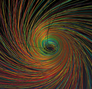 From the astrophysics point of view, it is thought that only massive black holes - with masses several times that of the Sun - are possible, as they are the only ones able to form in the final stages of stellar evolution. Although they have many fascinating properties, these large black holes are not as rich as their smaller cousins could be. The lighter the black hole the greater its surface gravity - and the more interesting the associated physical effects. This is simply due to the fact that Newton's gravitational force is linearly dependent on mass but quadratically dependent on the inverse distance (which is itself proportional to the Schwarzschild radius of the black hole). In particular, the phenomenon of Hawking evaporation is significant only in the case of small black holes: the tidal effect becomes so great near the surface that the particle pairs produced by quantum vacuum fluctuations may be broken, one particle falling into the black hole and the other being projected outwards. This process has yet to be observed, precisely because astrophysical black holes are too massive and therefore too cold, but it is certainly one of the most important predictions of quantum field theory in curved space-time. Contrary to the usual ideas of general relativity, black holes are capable of emitting particles. They can even be very hot and very bright if their mass is sufficiently small. Indeed, the principles of thermodynamics apply to black holes, the essential variables being temperature, entropy and internal energy, as opposed to surface gravity, area and mass in the case of general relativity.