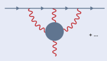 The biggest QCD contribution is due to hadronic vacuum polarisation (HVP) diagrams. These are computed from leading order (pictured left, O(α2)), with one “hadronic blob” at all orders in as (shaded) up to next-to-next-to-leading order (NNLO, O(α4), with three hadronic blobs) in the HVP.