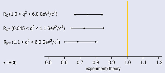 In any case, the amount of data analysed for the measurements described here corresponds to just one-third of what will be available by the end of 2018 at LHCb. Meanwhile, following a major overhaul of the KEK accelerator, the Belle-II experiment is about to start operations in Japan and is expected to collect data until 2025 (CERN Courier September 2016 p32). The two experiments are designed for the study of heavy-flavour physics, and their complementary characteristics will allow researchers to perform ultra-precise measurements of decays of b-quark hadrons. Hence, the prospects for continuing to test lepton universality in the next decade and beyond are excellent.