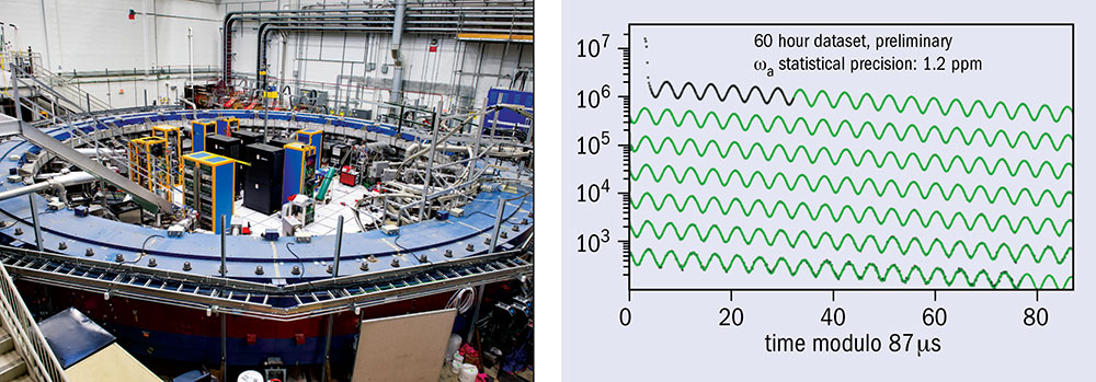 The international E989 collaboration hopes to measure aμ to a final precision of 140 parts per billion, improving on the BNL result by a factor of four. Following months of commissioning efforts beginning last autumn, the experiment started taking data in February. Its net accumulated dataset is already almost twice that obtained by BNL, although much of the initial run involved varying the operating conditions to optimise data collection and explore systematics.
