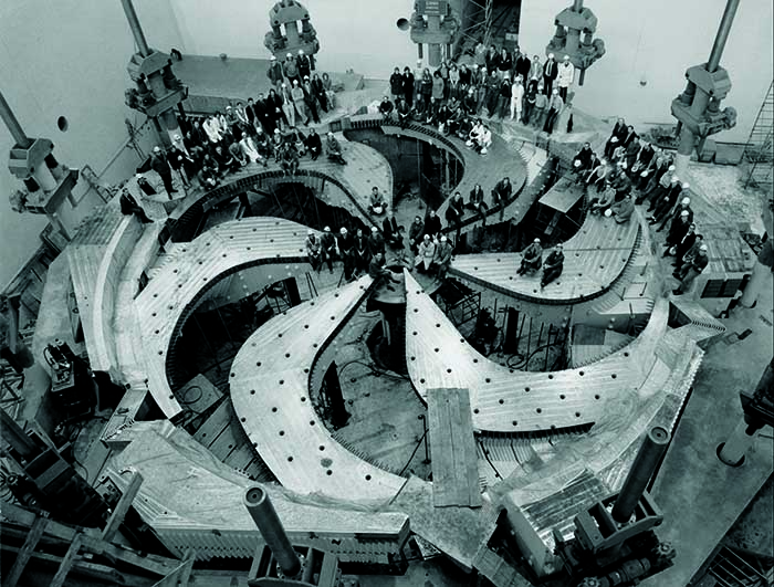 Upon his return to Vancouver, Blackmore shouldered the responsibility for the cyclotron’s injection, beam diagnostics and extraction systems. All of these components and more were put to the test with a full-scale model of the cyclotron’s centre core, which achieved first beam in 1972. Finally, despite a six-month delay to reshape the magnetic field produced by the 4000 tonne magnet, the TRIUMF team of about 160 physicists, engineers and technical staff coaxed a beam of protons from the cyclotron on 15 December 1974. TRIUMF’s scientific programme began the following year with an initial complement of experimental beamlines: proton, neutron, pion and muon. In the end, the project was on budget and very near the original schedule. The machine reached its design current of 100 μA in 1977, with Blackmore coordinating the first five years of commissioning and operations. He recalls that it was a remarkable experience to witness the moment first beam was achieved from the cyclotron. “At the start of it all, most of us had little understanding of cyclotrons and related technologies, but we had the valuable experience we had gained as graduate students.”