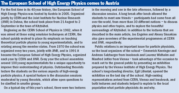 “Seventy per cent of today’s successful particle physicists have attended this school – which means you have a high chance to be one of them in the future,” says a joyful Egil Lillestøl as he welcomes us to the 2005 European School for High Energy Physics. Instantly more than 100 glasses rise, accompanied by a cheerful applause. We all feel lucky to be here.