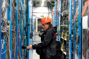 More recently, as part of Geneva’s annual Electron Festival in 2016, the winners of the 2014 Collide Geneva award, Rudy Decelière and Vincent Hänni, showed work developed with experimentalist Robert Kieffer and theorist Diego Blas. Their sound installation Horizons Irrésolus (2016) – which consists of 888 micro-synthesisers and speakers, network cable and nylon thread – was installed at CERN for visits during the Easter weekend when the festival traditionally takes place. The effort required by many people at CERN included registration to allow access to the Meyrin site and a shuttle bus to take visitors to see the installation. The response was enthusiastic, but not large.