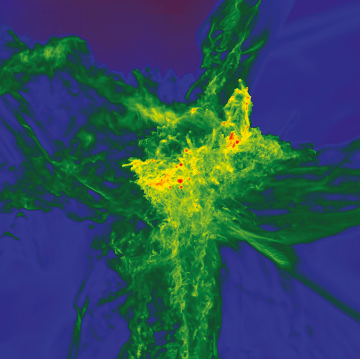 Cosmology has long predicted that the first generation of stars should differ strongly from those forming today. Born out of pristine gas of only hydrogen and helium, they could have reached masses between a thousand and ten thousand times that of the Sun, before collapsing after only a few million years. Such “primordial monsters” have been proposed as the seeds of the first quasars (see “Collapsing monster” image), but clear observations had until now been lacking.