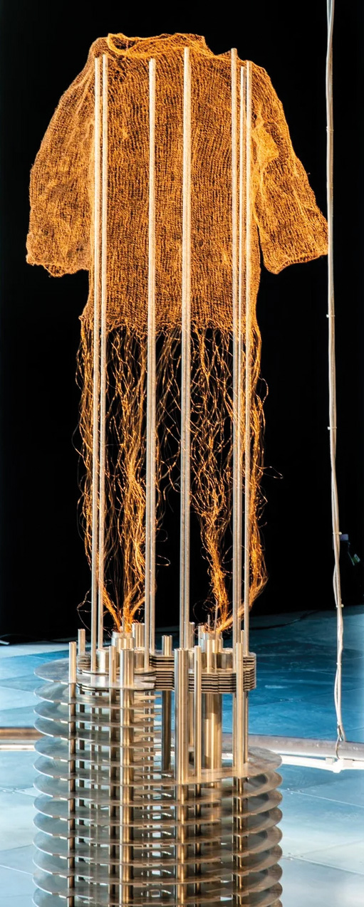 In doing so, it foregrounds the material reality of high-energy physics – copper as thread and cable at once. Though made of copper, the sweater evokes the magnetic levitation of the Meissner effect, a reference to the cryogenic superconductivity of the LHC. As Urbonas observes, “the accelerator needs extreme cold to do its job, while a sweater’s whole purpose is warmth.” By keeping that gap open, the piece operates less as demonstration than as speculation: a domestic object positioned against an environment colder than outer space, inviting viewers to rethink how scientific infrastructure is imagined. Urbonas leaves the reader with a provocation: “What if physicists talked in the knitwork of the world instead?”